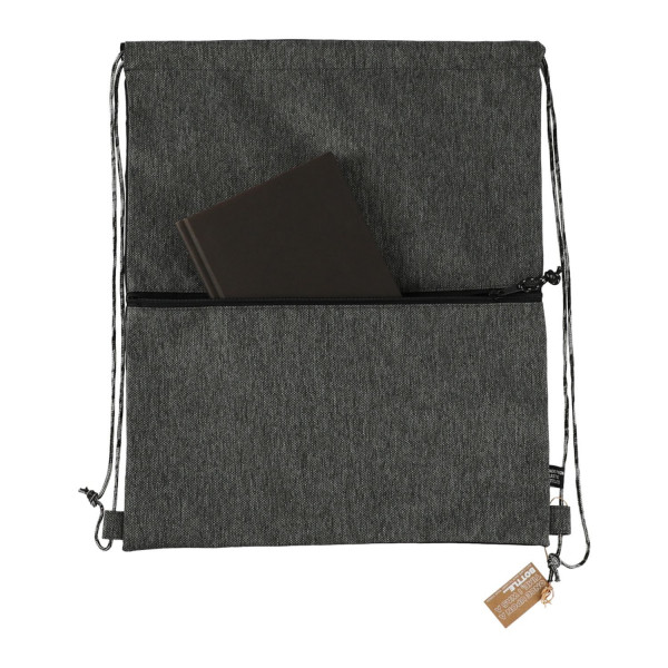 - The Vila Recycled Drawstring combines on-trend style with sustainable materials. Made with RPET from 100% recycled water bottles, this bag includes a zippered front pocket and a cinch closure main compartment. The marled pattern shoulder cords are sure to stand out. Through a partnership with 1% For The Planet, one percent of sales of all EcoSmart® products are donated to environmental nonprofits.