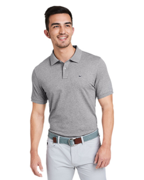 53% cotton, 42% polyester, 5% spandexMade from super soft, wicking & breathable Edgartown pique fabricBuilt-in stretchOpen shirt sleevesSelf-collar and button-up front placketTwo-button plackeWhale logo embroidered on left chest