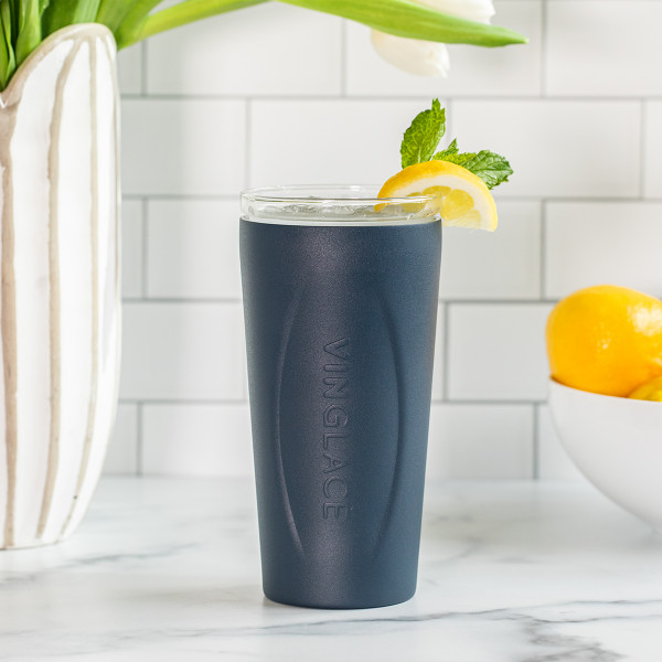 Enjoy your favorite beverages in style with the Vinglacé® 14 oz Tumbler. Designed for both elegance and functionality, this tumbler features a glass-lined interior that preserves the true taste of your drink without any metallic aftertaste. The durable stainless steel exterior is double-walled and vacuum-insulated, ensuring your beverage stays at the perfect temperature for hours. Whether you're sipping coffee, wine, or cocktails, this tumbler offers a premium drinking experience with a sleek, modern design.
