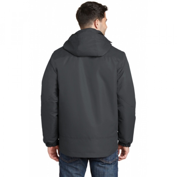 Packed with weather-fighting features, the Vortex Waterproof 3-in-1 provides a completely versatile outerwear system in one jacket. The fully seam-sealed waterproof shell and the warm polyfilled inner jacket can be worn separately or combined for optimal warmth and protection.::100% polyester shell::100% nylon zip-in inner jacket with 3-ounce polyfill::3000MM fabric waterproof rating::1000G/M2 fabric breathability rating::Detachable hood with drawcord and toggles for adjustability::Full-length interior storm flap::Chin guard::Contrast zippered chest and sleeve pockets::Front zippered pockets::Adjustable tab cuffs with hook and loop closures::Port Pocket™ for easy embroidery access::Inner jacket has front slash pockets::Due to the nature of cotton/polyester blends in dark and neon colors, special care must be taken throughout the decoration process when heat is applied for curing. Please consult with your decorator or material supplier.