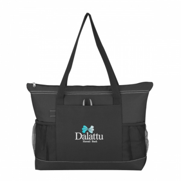 ::Made Of 600D Polyester::Top Zippered Closure::Large Front Pocket::2 Side Mesh Pockets::Loop For Attaching Pen Or Keys::22" Handles::Spot Clean/Air Dry