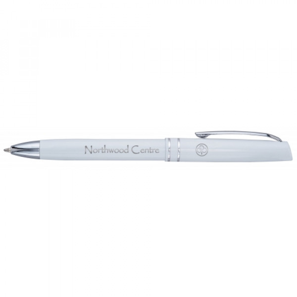 The Vozzano™ Pen exudes European sophistication, making it an excellent choice for promotional branding. Its lustrous satin finish is complemented by shining silver bands and clip, creating a refined aesthetic. The jumbo barrel ensures a comfortable, ergonomic grip, while the strong push cap retraction mechanism and hybrid ink provide a seamless writing experience. With ample space for custom decoration, the Vozzano™ Pen serves as an effective promotional product to showcase your brand.