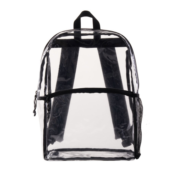 A stylish and transparent clear PVC backpack featuring a zippered front pouch and side mesh water bottle pocket—an ideal accessory for venue compliance, travel, or everyday use. As a promotional product, it can be custom decorated or branded to showcase your logo while providing practical visibility and functionality.