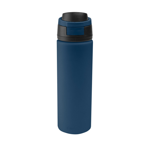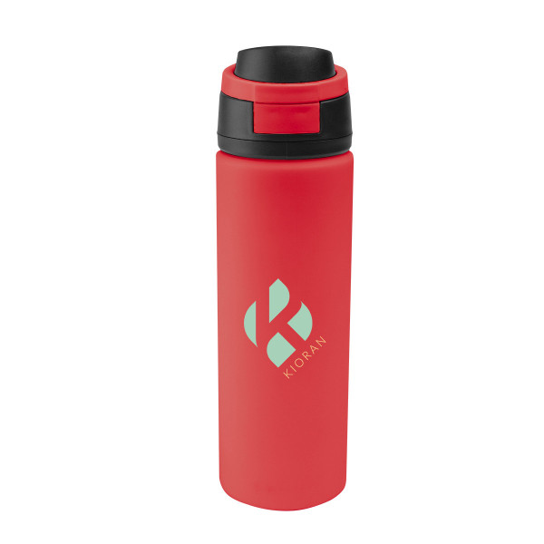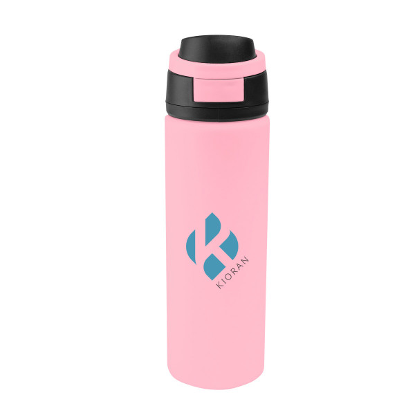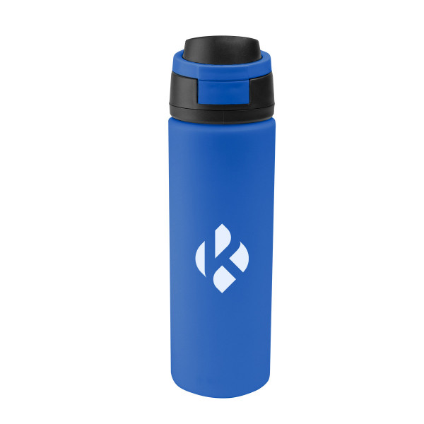 The 24 oz. Pop Sip Recycled Stainless Steel Bottle offers a sustainable and stylish hydration solution for eco-conscious individuals. Crafted from recycled stainless steel with a sleek powder-coated finish, this bottle features a spill-resistant sip-through lid that opens with a simple push button, ensuring convenience on the go. Its easy-carry handle adds to its portability, making it perfect for daily use. As a promotional product, it provides ample space for custom branding, allowing your logo to stand out while promoting environmental responsibility.