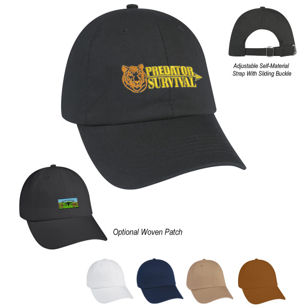 ::100% Washed Cotton Twill ::6 Panel Low Profile ::Unstructured Crown & Pre-Curved Visor ::Adjustable Self-Material Strap With Sliding Buckle