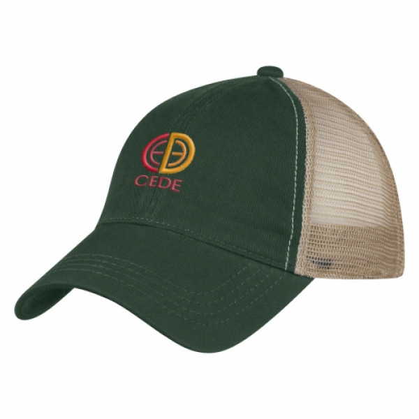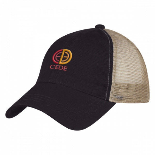 ::100% Washed Cotton Twill Crown::6 Panel, Low Profile::Unstructured Crown & Pre-Curved Visor::Cotton Twill Sweatband::Mesh Back With Adjustable Plastic Snap Tab Closure