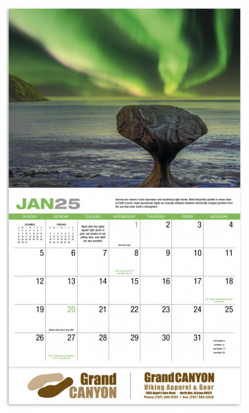 Mesmerizing weather phenomena take center stage on this 13-month calendar. The FSC® label means that the materials used for this product come from well-managed FSC®-certified forests and other controlled sources.