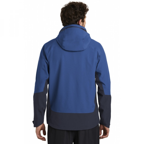 Two element-fighting WeatherEdge 5K/5K fabrics come together in this jacket for highly waterproof, breathable performance. Fully seam-sealed, this jacket also features the exclusive StormRepel® durable water-repellent (DWR) coating for additional weather protection. Four-way stretch for easy mobility. Adjustable hood with locking drawcord, waterproof Vislon® front zippered pockets, adjustable tab cuffs with hook and loop closures, embroidery access pocket. Adjustable locking drawcord hem. Contrast Eddie Bauer and WeatherEdge logos heat transfers on left sleeve. Made of 94/6 poly/spandex and 92/8 poly/spandex.