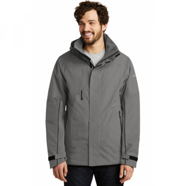Built to outlast the elements, this fully seam-sealed technical jacket has exceptional 10K/10K fabric waterproof and breathability ratings thanks to exclusive WeatherEdge Plus technology. ::Exclusive StormRepel® durable water-repellent (DWR) coating adds extra exterior weather protection. ::Fully insulated, this jacket also provides long-lasting warmth and comfort when temps drop. ::Detachable, adjustable hood with locking drawcord, full-length exterior storm flap and ventilating pit zips. ::Welded front zippered pockets with waterproof zippers. ::Welded right chest pocket with interior media port. ::Interior pocket with elastic to store goggles, hat and bulkier items. ::Adjustable tab cuffs with hook and loop closures. ::Adjustable locking drawcord hem. ::Contrast Eddie Bauer and WeatherEdge Plus heat transfer logos on left sleeve. ::Made of 100% polyester with durable water-repellent (DWR) coating and TPU film.