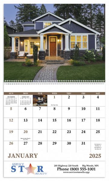This calendar features gorgeous homes that keep your message close at hand.
