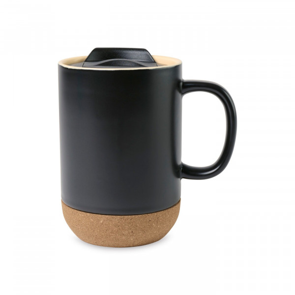 - Features a ceramic lidded mug in black for hot or cold beverages
