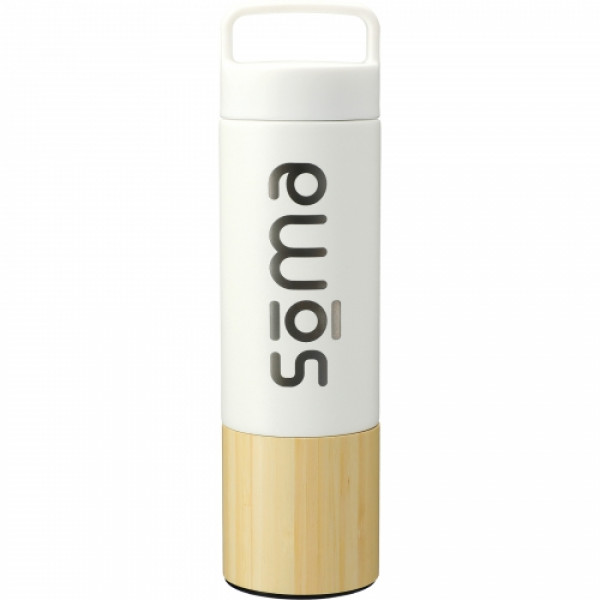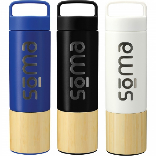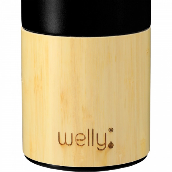 The Welly® Copper Vacuum Insulated Bottle features durable, double-wall stainless steel vacuum construction with copper insulation, which allows your beverage to stay cold for 48 hours and hot for at least 12 hours. ::The construction also prevents condensation on the outside of the bottle. ::Removable stainless steel infuser included. ::Comes complete with on-trend, durable powder coating and the natural bamboo wrap. ::It features a screw-on lid and a wide opening for comfortable filling and pouring. ::Perfect for ice cubes and fits most standard car cup holders. ::Due to the nature of bamboo and powder coated materials, there might be a slight difference on laser engraved logos. ::No two pieces are alike which makes each piece unique for you!::18oz.