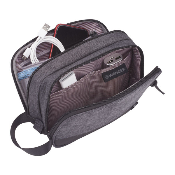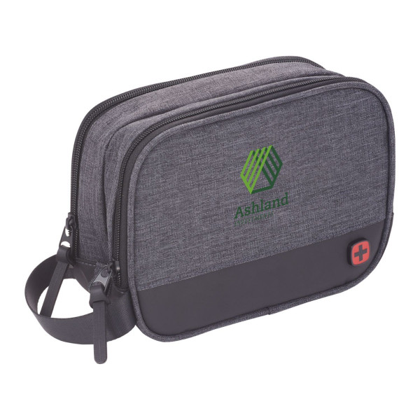 The Wenger RPET Dual Compartment Dopp Kit is a practical and stylish travel essential designed to keep toiletries organized and protected. Featuring two water-resistant compartments with built-in organizational pockets, plus a sturdy webbed loop handle for easy carrying, this dopp kit combines function and durability. As a promotional product, it can be custom-decorated or branded, making it a smart gift for corporate travel programs or event giveaways.