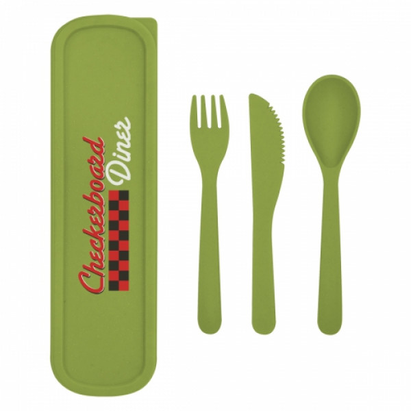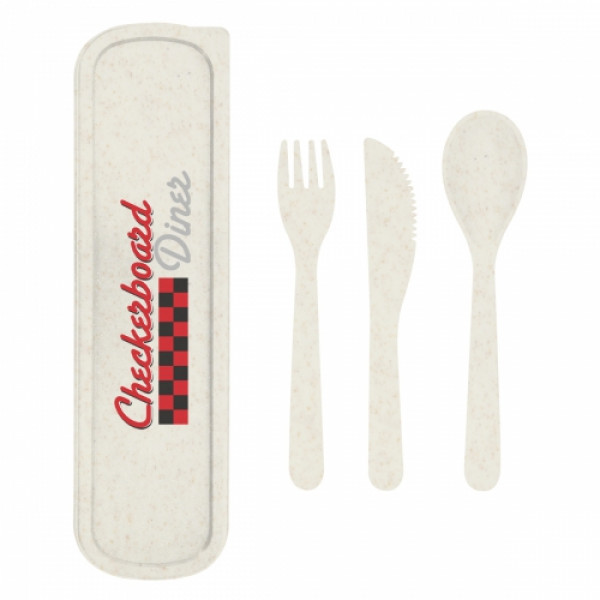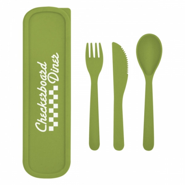 ::Includes Fork, Spoon and Knife::Wheat Straw Polypropylene::Composed of Reclaimed Stalks From Wheat::Less Plastic Used In The Material::Harvested Wheat Is Renewable And Sustainable::No Indication Of Extractable Gluten In Testing::Microwave Safe::Protective Travel Case For Convenient Travel And To Keep Utensils Clean::Meets FDA Requirements::BPA Free::Hand Wash Recommended