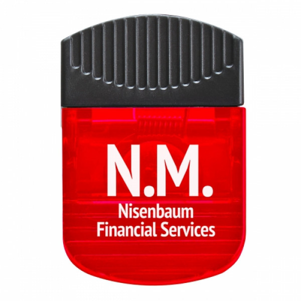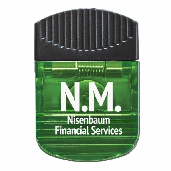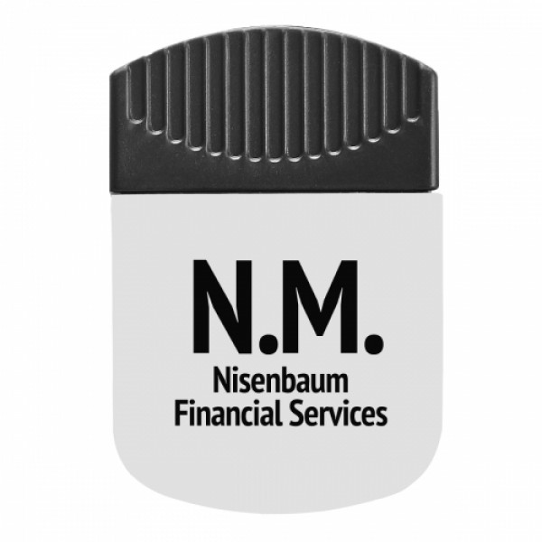 ::Spring-Loaded Hinge::Magnet On Backside::Top Rubber Grip::Large Imprint Area