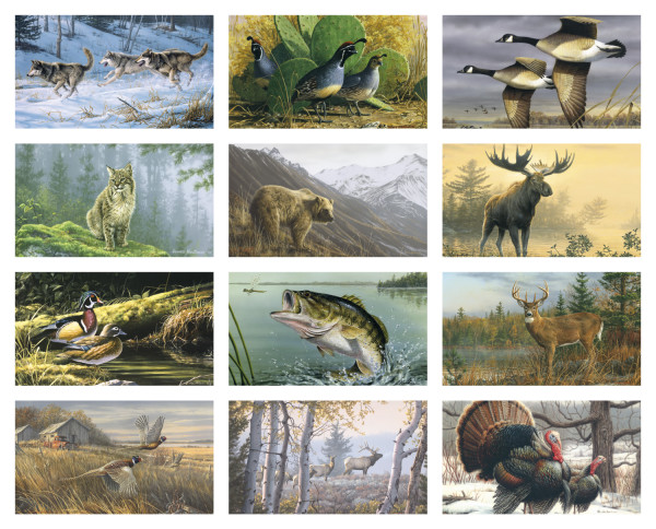 Reproductions of original paintings by these talented artists make this an impressive wildlife calendar.Details