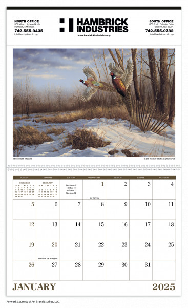 Hunting or outdoor-themed businesses are ideal prospects for this calendar. An item any sportsman will be proud to display and use.