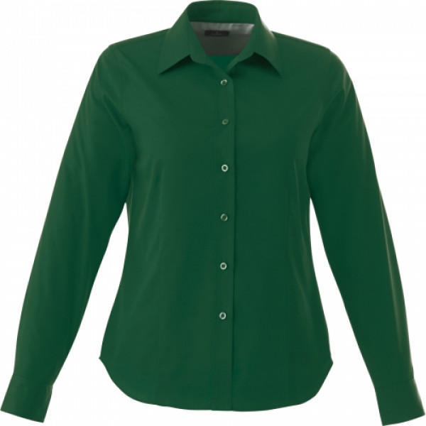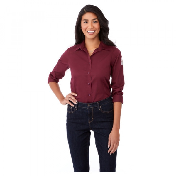 The Wilshire is a classic woven thats perfect as part of a work uniform. Available in both mens and womens styles, the durable Wilshire is designed for heavy wear. The mens style features a left-chest pocket and center-back box pleat, while the womens style has shaped seams and a tapered waist for a more flattering fit. With its decoration-friendly design and wide range of color options, the Wilshire projects a stylish, professional look for any industry.<br />::65% Polyester / 35% Combed cotton woven twill<br />::Center front button placketUpper left chest patch pocket (men's)<br />::Dyed-to-match buttons<br />::Adjustable one button cuffs with single pleats<br />::Recommended Decoration: HXD, Embroidery, Transfer - Ask us for more info on all the great retail imprint techniques and placements available on this item.