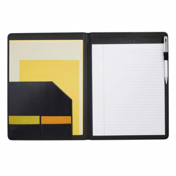 ::Documents pocket. ::Multiple business card pockets. ::Elastic pen loop. ::Includes 8.5"" x 11"" notepad.::Pen not included.