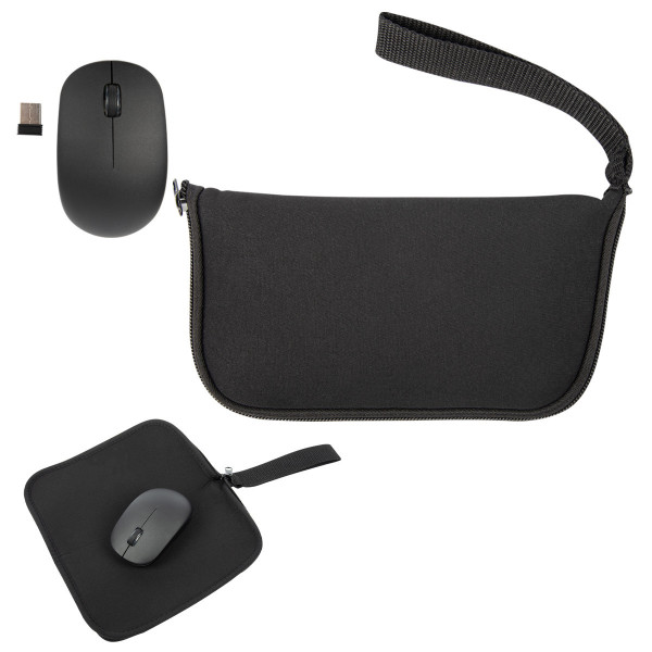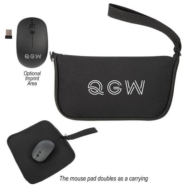 2.46Ghz Wireless Battery Operated Mouse Neoprene Carrying Case With Zippered Closure And Wrist Strap Unzip Carrying Case To Use As A Mousepad
