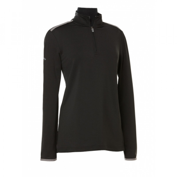 Opti-Dri technology transfers moisture away from the body to keep you cool and dry. UV Repel technology keeps skin safe from the sun's harmful rays. UPF 50. Stretch fabric moves with you to increase your range of motion. 1/4-Zip with Callaway logo rubber zipper pull. Contrast binding detail at shoulder and cuffs. Contrast embroidered Callaway logo on right sleeve.