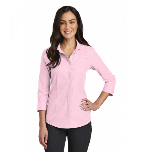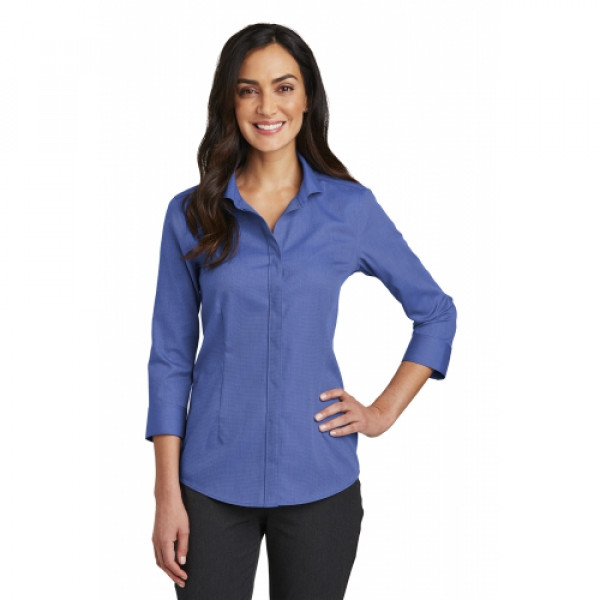 Thoroughly updated, this crisp nailhead shirt has a silky feel and a wrinkle-resistant finish for exceptional non-iron performance. 4-ounce, 60/40 cotton/polyester with pucker-free taped seams, RH engraved buttons to elevate the office-ready look. Open collar, covered placket. Front and back darts. Two-button cuffs.