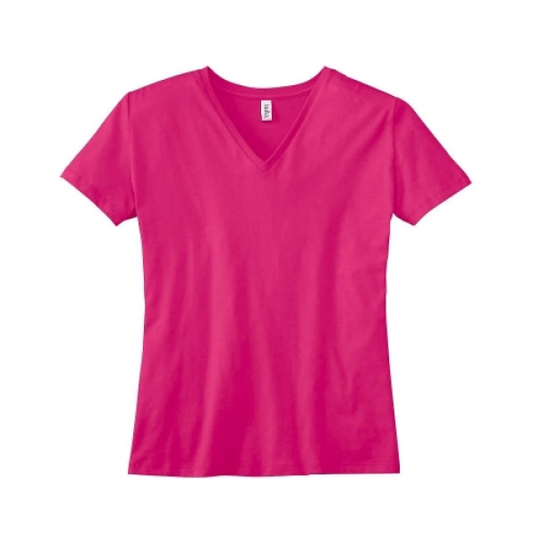 100% combed ringspun cotton; classic style reinvented with a comfortable set-in V-neck; super soft baby jersey knit; contoured sideseams flatter the figure; set-in sleeves; Athletic Heather is 90% cotton, 10% polyester;