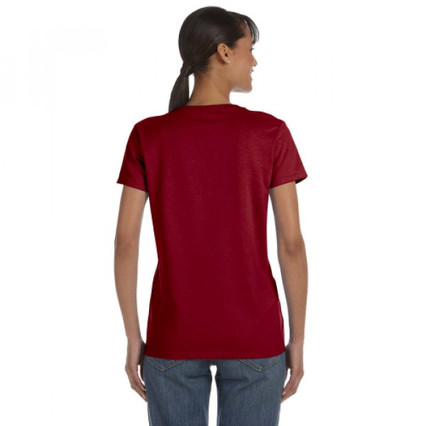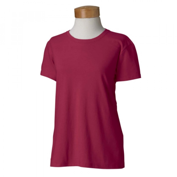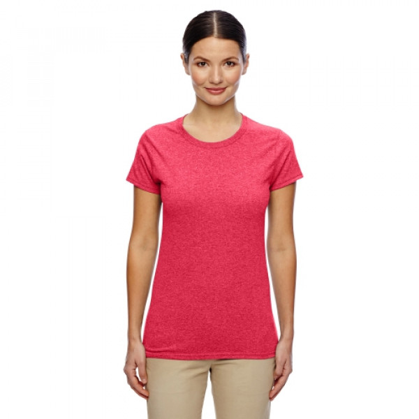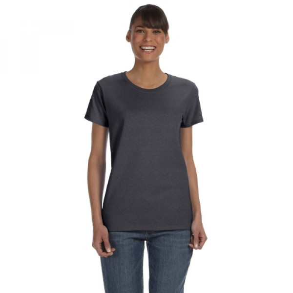 ::100% preshrunk cotton; Ash Grey 99% cotton, 1% polyester::Antique Cherry Red and Sport Grey are 90% cotton and 10% polyester::Blackberry, Dark Heather, Heather Sapphire, Sunset, are 50% cotton, 50% poly::Lilac, Safety Green, Safety Orange, Safety Pink are 50% cotton, 50% polyester::double-needle stitching throughout; seamless rib at neck::feminine ½" rib mid scoop neck; sideseamed with slightly tapered Missy fit::cap sleeves for comfort; taped shoulder-to-shoulder