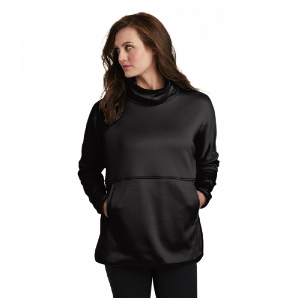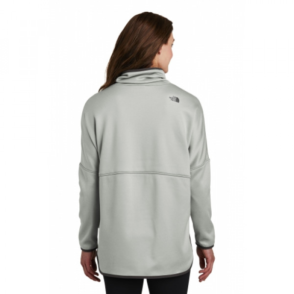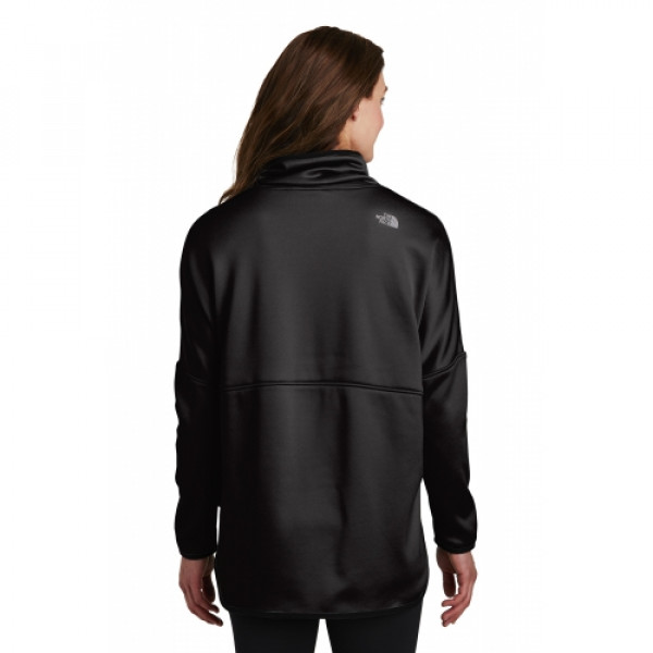 This soft, luxe fleece poncho is sure to keep you warm on those chilly nights at home or outdoors. The cowl neck blocks gusty winds while the front pouch pocket keeps hands warm when temps drop.::360 g/m2 95/5 polyester/elastane luxe heathered stretch fleece::Mid-weight luxe stretch fleece poncho::Cowl neck::Front pouch pocket ::Overlay tape binding on cuffs and hem::Split high/low hem for a feminine touch and added coverage::Contrast The North Face logo heat transfer on right back shoulder