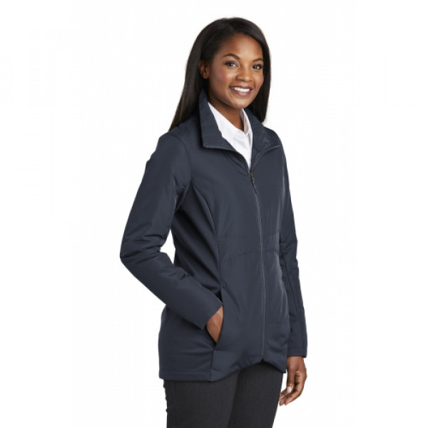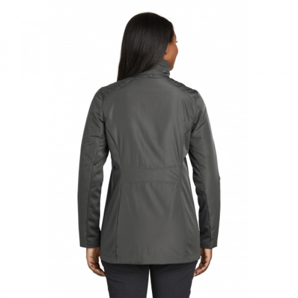 This jacket combines the warmth of low-bulk quilted insulation with flexible softshell side panels for a trend-right, weather-resistant look. :: Can be zipped in and secured by snap attachments inside an outer Collective layer :: 100% polyester woven shell:: 100% polyester knit bonded to a water-resistant film insert and a 100% polyester microfleece lining at side panels and under arms:: 100% polyester printed lining with insulation behind the outer woven shell:: Slightly longer length:: Zip-through cadet collar:: Tulip hem