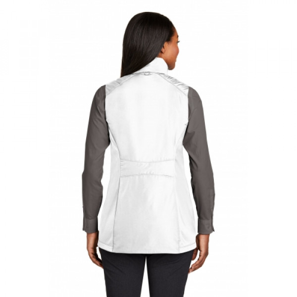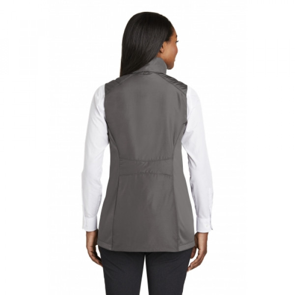 Insulation and stretch soft shell side panels make this vest a versatile, flattering and cozy cold-weather layer.::Can be zipped in and secured by snap attachments inside an outer Collective layer::100% polyester woven shell::100% polyester knit bonded to a water-resistant film insert and a 100% polyester ::microfleece lining at side panels and under arms::100% polyester printed lining with insulation behind the outer woven shell::Slightly longer length::Zip-through cadet collar::Vislon® center front zipper::Front and back waist details::Stretch side panels::Open front pockets::Port Pocket™ for easy embroidery access::Open hem::Tulip hem