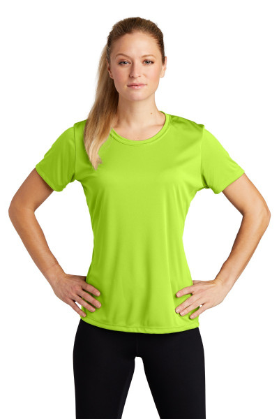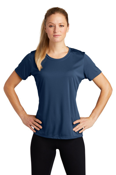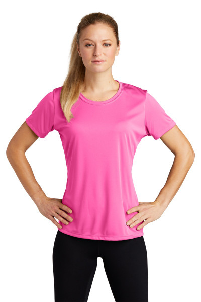 - 3.8-ounce, 100% polyester interlock with PosiCharge technology