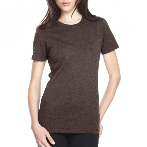 ::60% combed ringspun cotton/40% polyester jersey::4.3 oz.::32 singles::Slightly heathered::Fabric laundered for reduced shrinkage::1x1 baby rib-knit set-in collar::Tear-away label