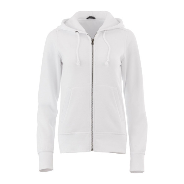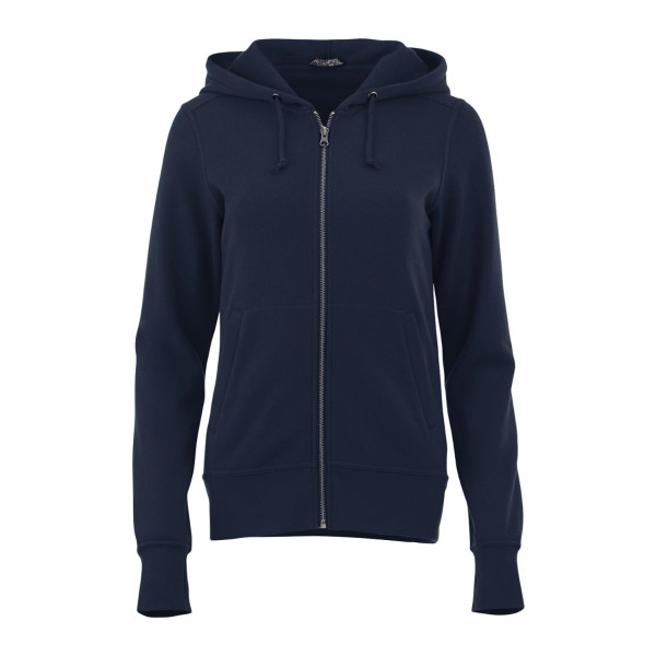 This women's fleece zip hoody combines relaxed style with everyday comfort. Crafted from ultra-soft fleece, it features rib knit cuffs with thumb exits, a rib knit hem, and an interior media pocket with headphone cord port, making it ideal for on-the-go wear. With its customizable surface, it also serves as a great promotional product that can be decorated or branded for corporate gifts, team apparel, or events.
