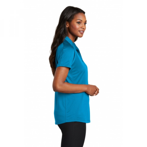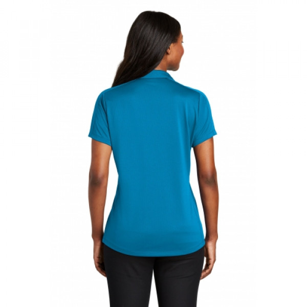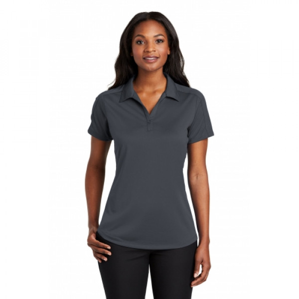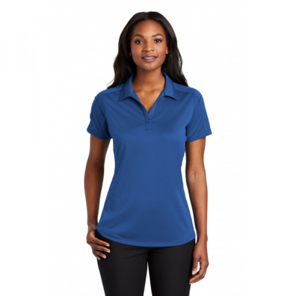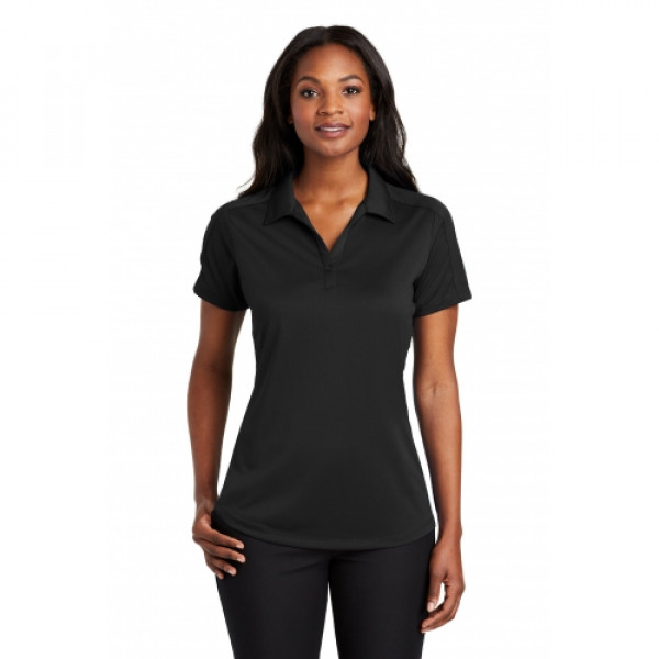 A subtle diamond jacquard texture gives this moisture-wicking polo a finer, elevated appearance. Sleek self-fabric shoulder and side panel piecing make it perfect in or out of the office.::5-ounce, 100% polyester::Self-fabric collar::Single-button Y-neck placket ::Open hem sleeves::Slightly curved hem