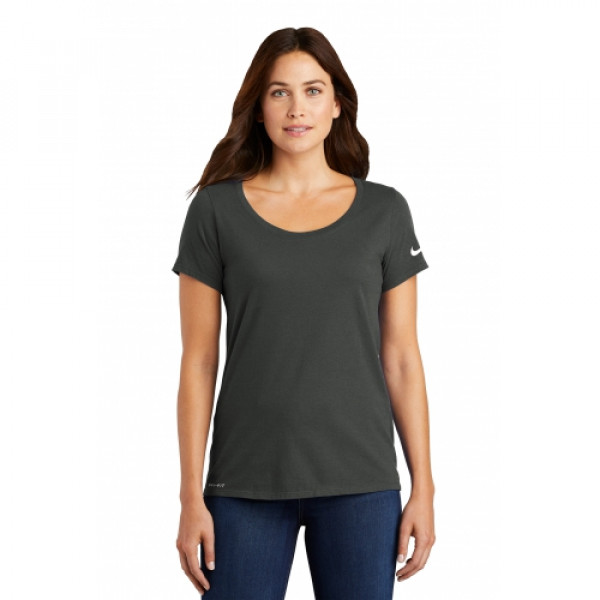 This Nike performance tee features sweat-wicking fabric to help keep you dry and comfortable. Durable rib knit scoop neck. Heat transfer label for tag-free comfort. Double-needle stitching throughout. Contrast heat transfer Swoosh design trademark on left sleeve. Contrast heat transfer Dri-FIT logo at right hem. Made of 4.7-ounce, 60/40 cotton/poly Dri-FIT fabric.