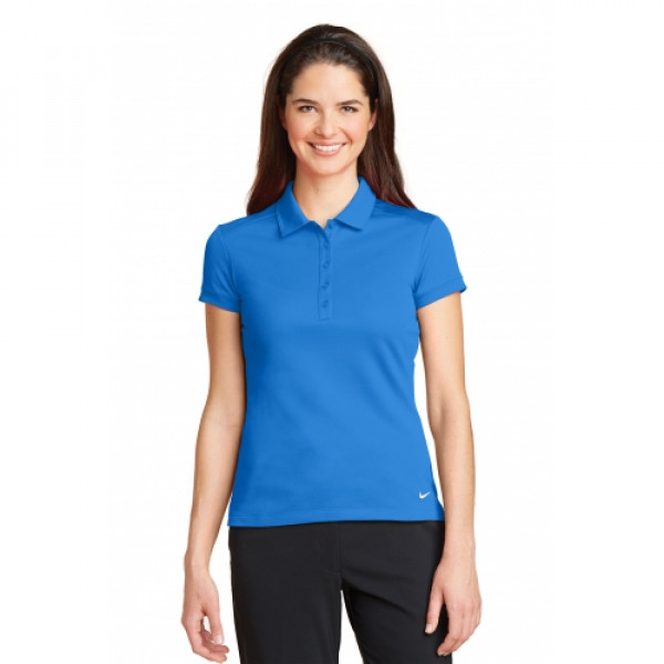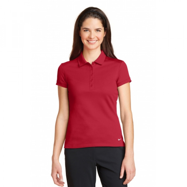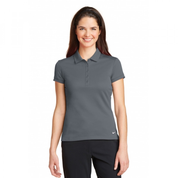 Dri-FIT moisture management technology achieves maximum comfort while an iconic look gives this pique polo modern style. ::Design details include a self-fabric collar dyed-to-match buttons and open hem sleeves. ::Tailored for a feminine fit with a five-button placket::The contrast Swoosh design trademark is embroidered on the left hem::Made of 4.7-ounce 100% polyester pique Dri-FIT fabric