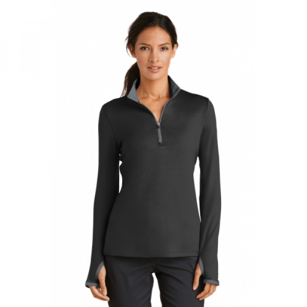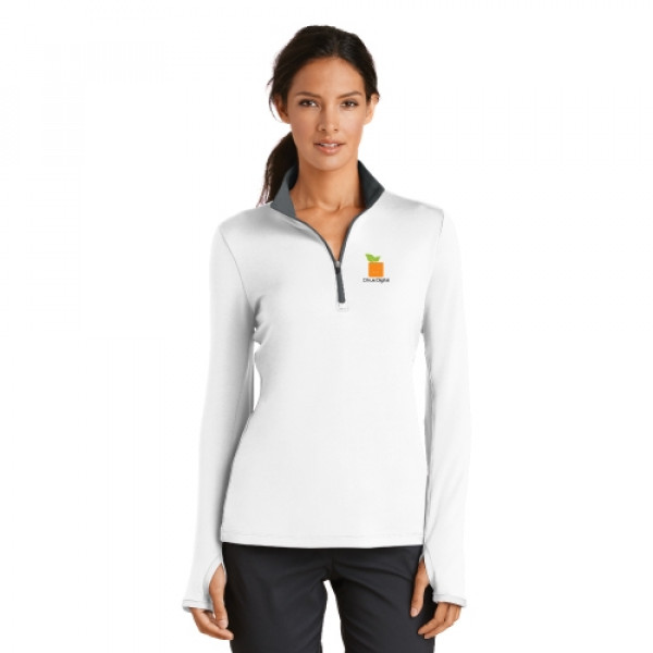 Built for the course gym or just around town this cover-up performs with comfortable stretch for uninhibited movement and Dri-FIT moisture management technology for exceptional cooling. ::The design includes a contrast collar and zipper open cuffs and an open hem::Tailored for a feminine fit::The contrast Swoosh design trademark is embroidered on the upper left sleeve::Made of 7.6-ounce 93/7 polyester/spandex Dri-FIT fabric