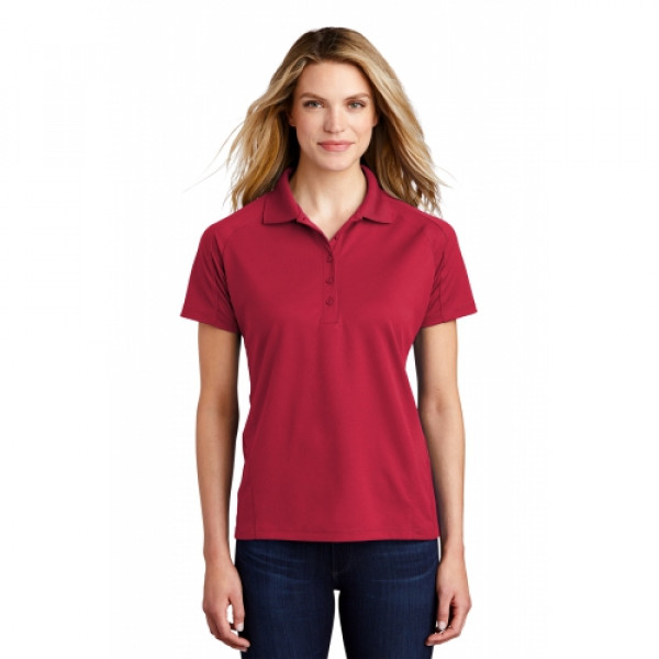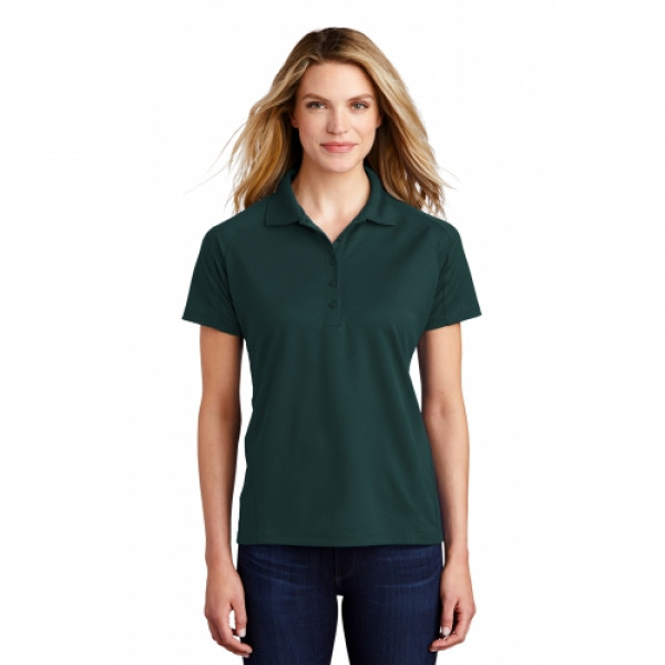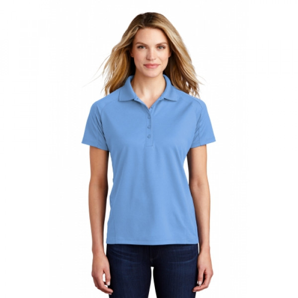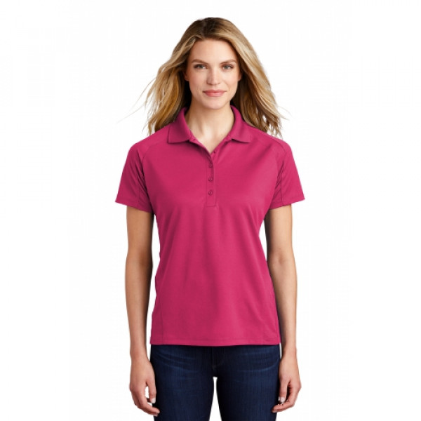 Ventilation panels on the back sides and shoulders keep you cool while Dri-Mesh Pro technology helps manage moisture in this high-performing shirt styled just for her. 3.9-ounce 100% polyester mini pique on body 96/4 poly/spandex stretch mesh on back side and shoulder panels Gently contoured silhouette Tag-free label Flat knit collar 5-button placket with dyed-to-match buttons Raglan sleeves