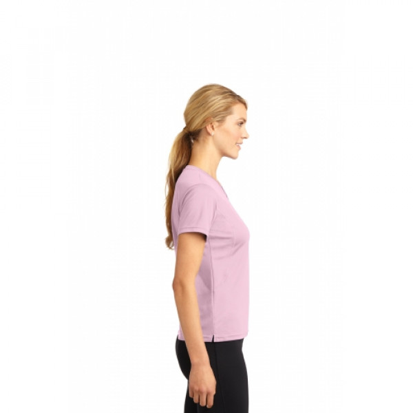 The double layer mesh construction of Dri-Mesh releases heat and sweat while maintaining superior breathability. The result is you stay comfortable cool and dry in even the most active workouts. | 3.5-ounce 100% polyester double mesh Taped neckCrossover self-fabric v-neckTag-free labelPrincess seams for flattering fitDouble-needle shoulders sleeves and hem*Due to the nature of 100% polyester performance fabrics special care must be taken throughout the screen printing process.