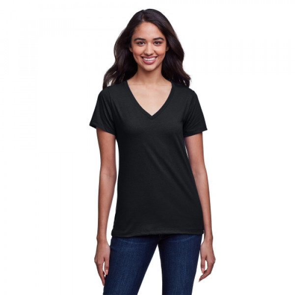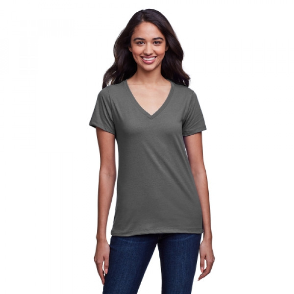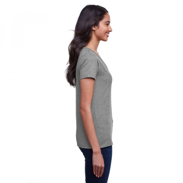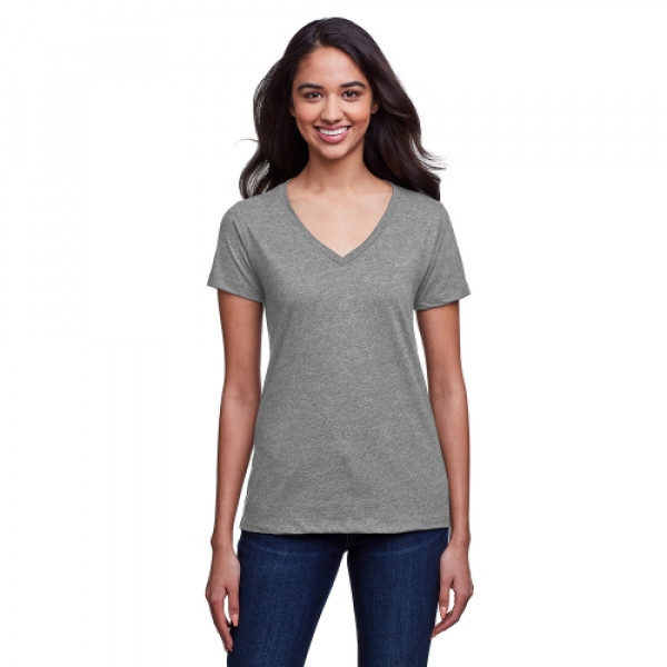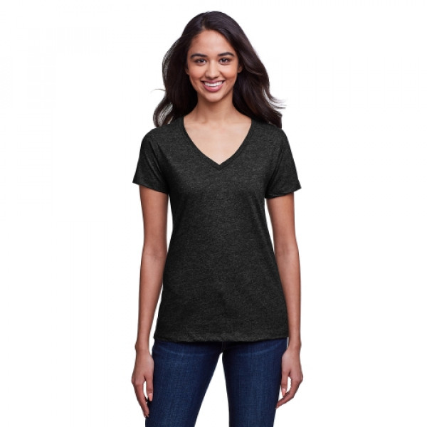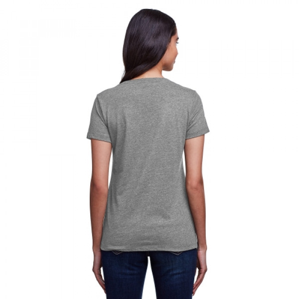 ::4.3 oz., 145 gsm, 30% recycled cotton/30% cotton/40% recycled poly rpet::30 singles::Moisture wicking fabrication::Pre-shrunk::1x1 baby rib set-in collar::Sideseamed::Relaxed fit::Light weight with a soft hand feel