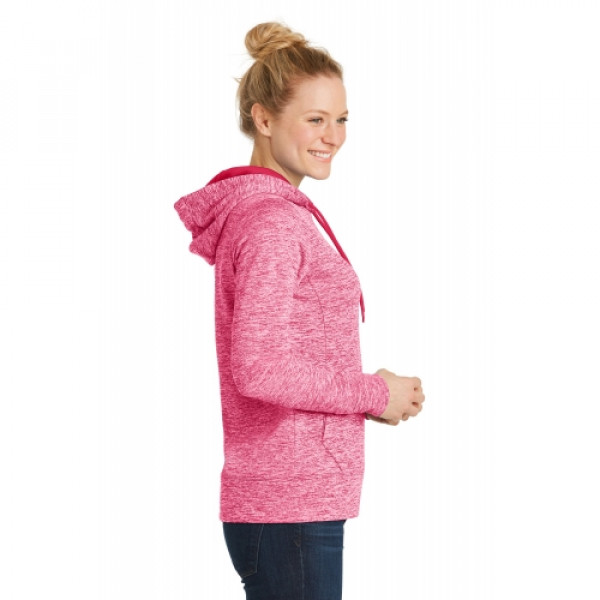 Stay charged in this moisture-wicking, color-preserving fleece in heathered yarn dye.::100% polyester with PosiCharge technology::Gently contoured silhouette::Choose from 4 colors::Taped neck::Three-panel hood with solid lining and dyed-to-match drawcords::Set in sleeves::Princess seams with integrated front pouch pocket::elongated self-fabric cuffs and hem