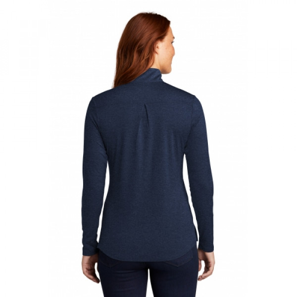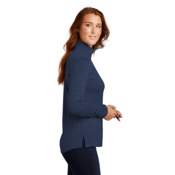 With a subtle heather texture and moisture-wicking technology, this lightweight 1/4-zip will help you achieve all your performance endeavors. ::4.4-ounce, 100% polyester::Tag-free label::Princess seams::Extended side vents::Back yoke with pleat::Drop tail rounded hem