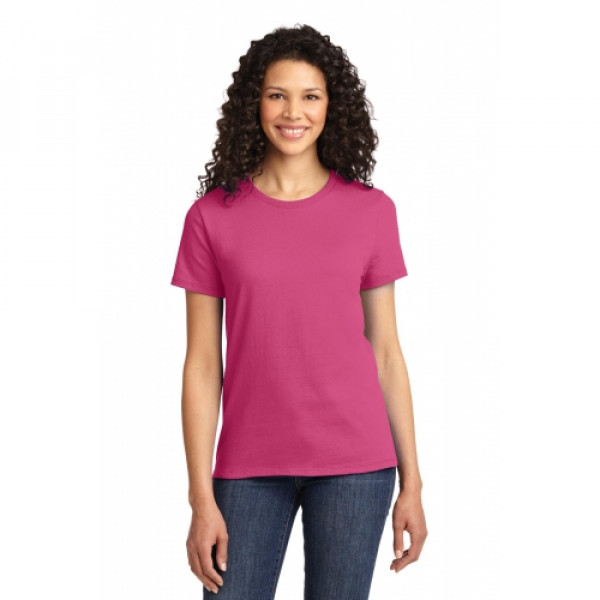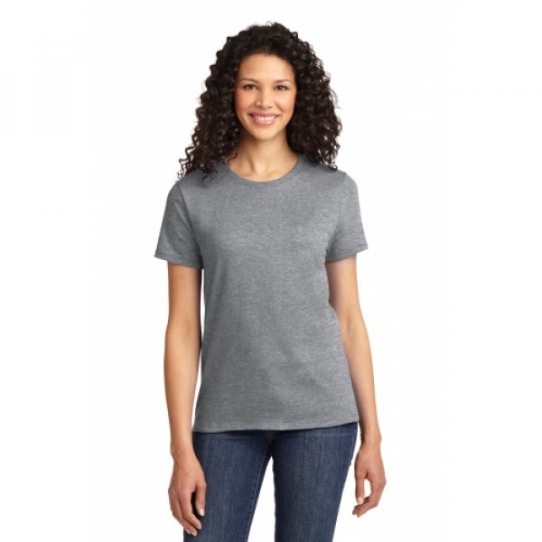 A year-round essential our best-selling t-shirt has been voted "most popular" by groups teams clubs and schools across America. Heavyweight 6.1-ounce 100% cotton Shorter cut through the body and sleeves for a more feminine fit Shoulder-to-shoulder taping Coverseamed neck Double-needle hemAthletic Heather is 90/10 cotton/poly.