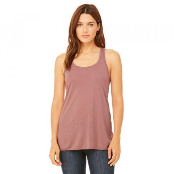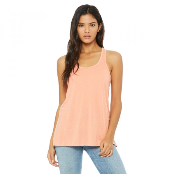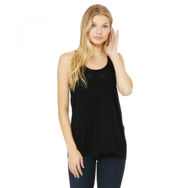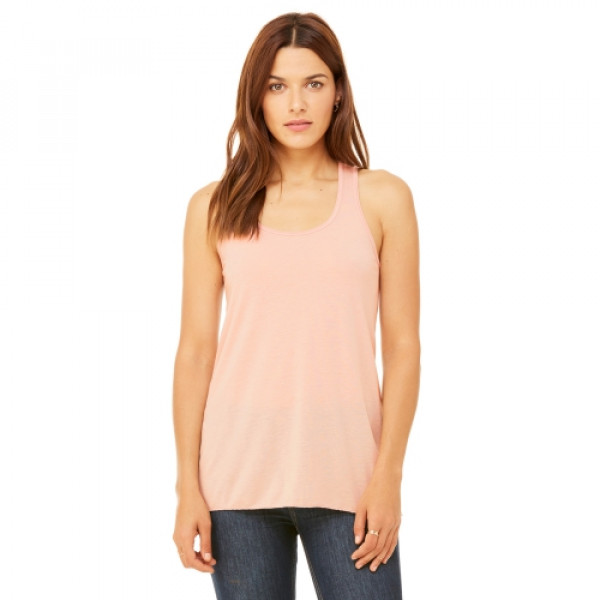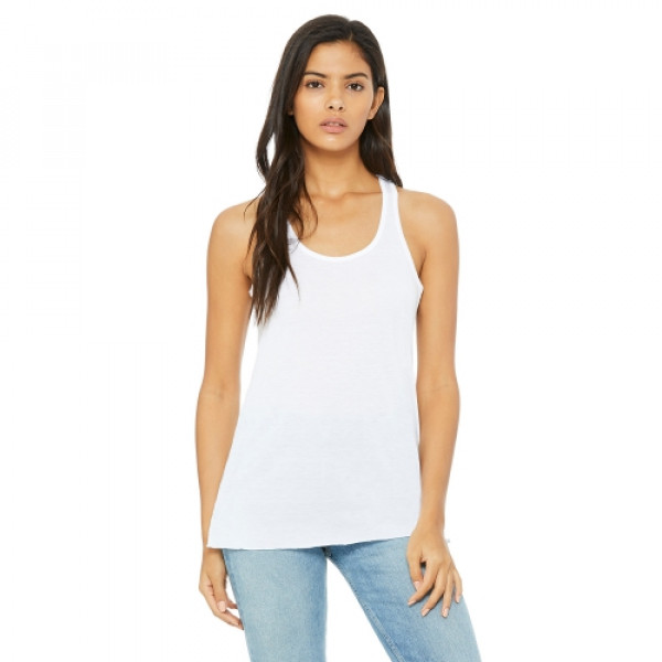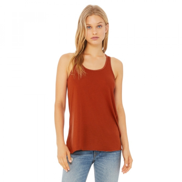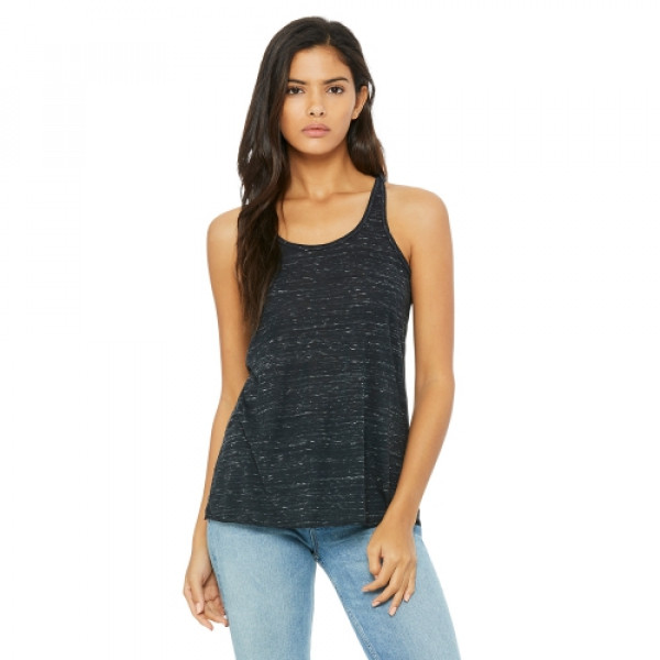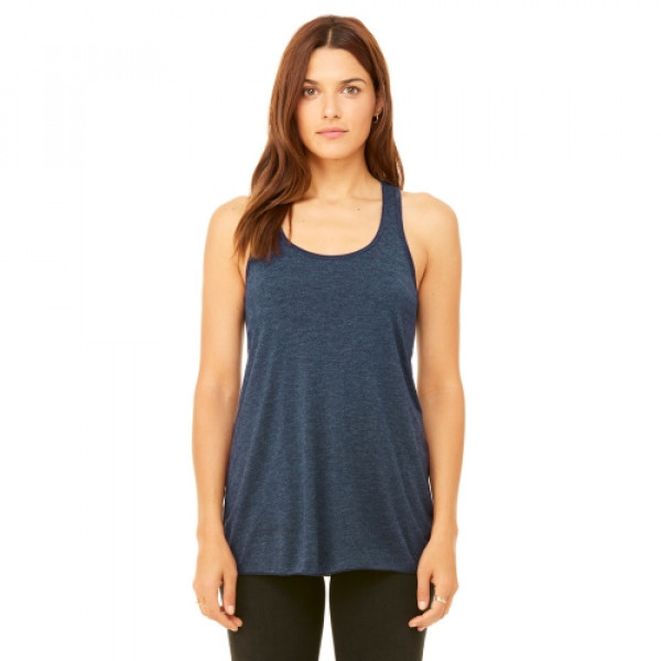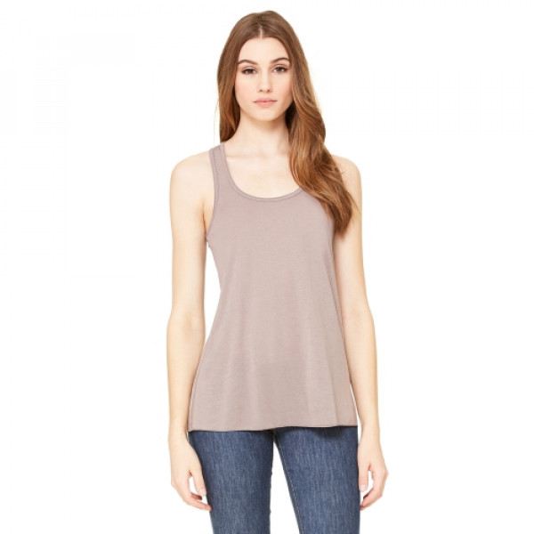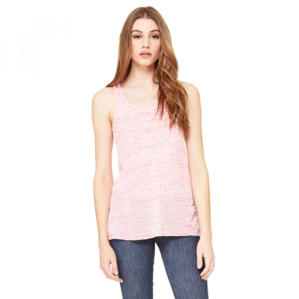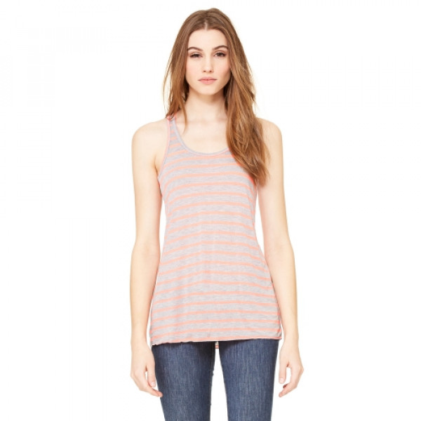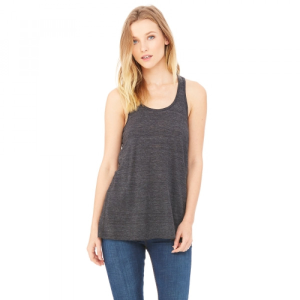 Fabric:::3.7 oz., 65% polyester, 35% viscose; 30 singles::Athletic Heather is 52% polyester, 48% viscose;::Marble colors are 3.5 oz., 91% poly, 9% combed ringspun cotton, 40 singles::Stripe colors are 70% rayon, 30% polyesterFeatures:::Racerback with sheering at seam::Sideseamed::Merrowed bottom hem; easy, drapey fit::Tear-away label