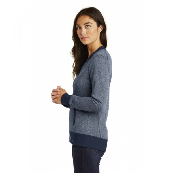 The New Era Women's French Terry Baseball Full-Zip blends classic baseball styling with modern comfort. Made from 9-ounce sueded French terry (52/48 cotton/poly), it offers a super-soft feel with a relaxed fit. Details include a contrast rib knit collar, cuffs, and hem, along with exposed black nickel zippers and zippered front pockets for a contemporary touch. Finished with an embroidered New Era flag logo on the sleeve and a woven badge at the hem, this jacket combines sporty style with everyday versatility.