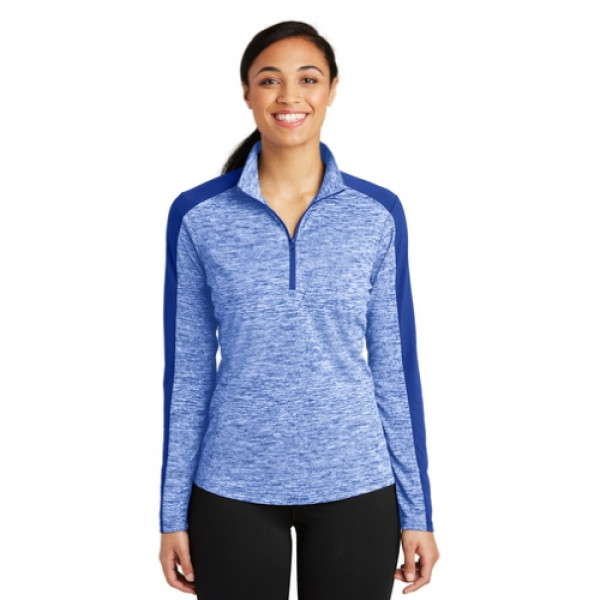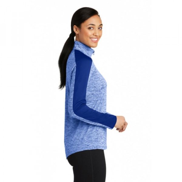 This lightweight pullover locks in color, wicks moisture, resists snags and has an amped up colorblock look.::4.1-ounce, 100% polyester yarn-dyed jersey with PosiCharge technology (Electric Heather)::4.7-ounce, 100% polyester jersey with PosiCharge technology (solid)::Gently contoured silhouette::Removable tag for comfort and relabeling::Cadet collar::Reverse coil zipper::Colorblock on shoulders and sleeves::Princess seams::Set-in sleeves::Open cuffs and hem::Drop tail hem