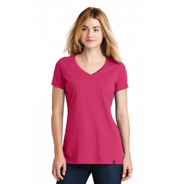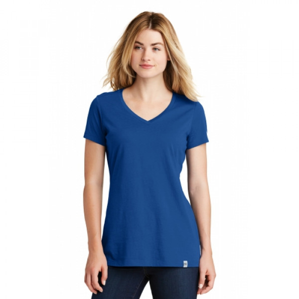 This flattering v-neck feels soft and drapey for timeless style.::4.4-ounce, 60/40 ring spun combed cotton/poly, 30 singles::Crossover v-neck::Heat transfer label for tag-free comfort::Reverse neck and shoulder taping::Heat transfer New Era flag logo on left sleeve::Woven New Era badge at hem