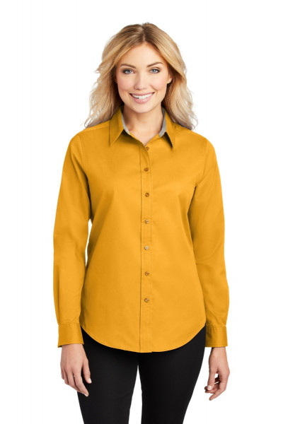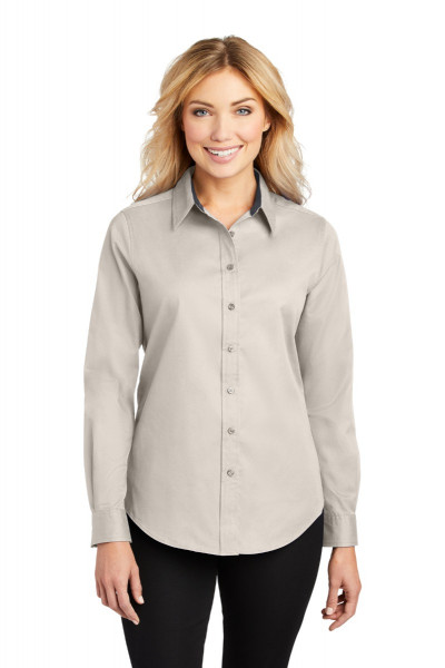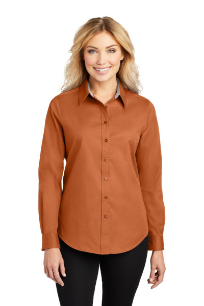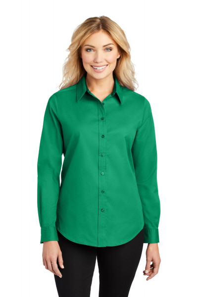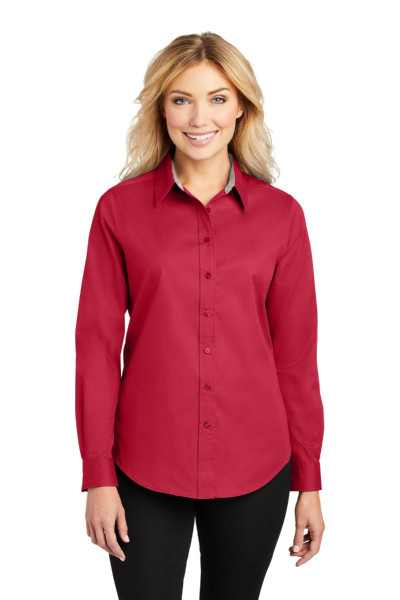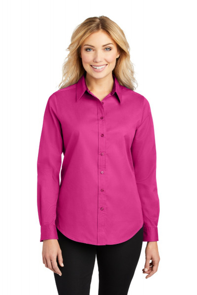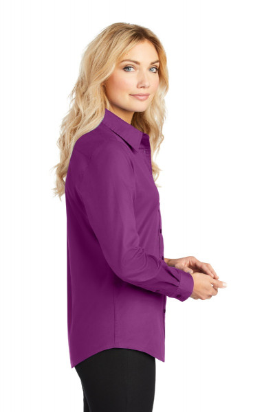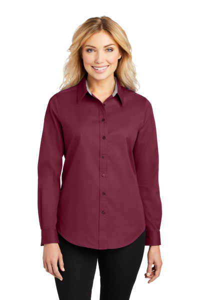This comfortable wash-and-wear shirt is indispensable for the workday. Wrinkle resistance makes this shirt a cut above the competition so you and your staff can be, too.::4.5-ounce, 55/45 cotton/poly::Traditional, relaxed look::Open collar::Dyed-to-match buttons::Adjustable cuffs::White, Athletic Gold, Texas Orange, Red, Burgundy, Coffee Bean, Light Blue, Navy, Classic Navy, Steel Grey, Purple and Black have a Light Stone contrast neckband.::Light Stone and Royal have a Classic Navy contrast neckband.::Dark Green has a Navy contrast neckband.