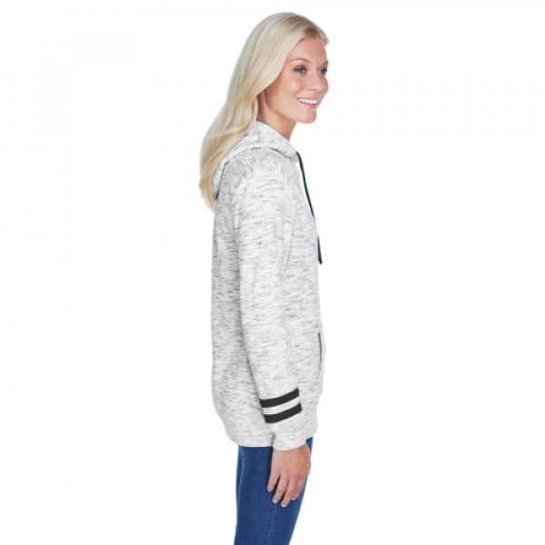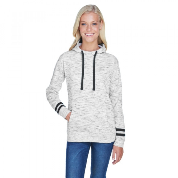 Fabric:::7.25 oz. 60% cotton, 40% polyester melange fleeceFeatures:::Scuba hood::Contrast drawcords::Front pouch pocket::Rib waist & cuffs::Two contrast stripes on each sleeve